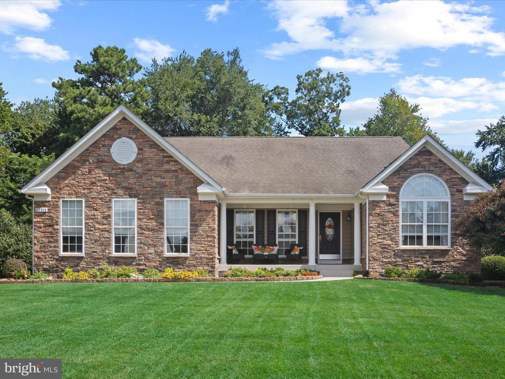 This beautiful home located in the desirable community of Trails of Beaver Creek in Harbeson, Delaware. Experience the luxury of coastal living while located just minutes from pristine Lewes and Rehoboth beaches. Curb appeal abounds with a beautifully manicured lawn, newly completed landscaping (May 2025), and a backdrop of mature trees that create a serene and private wooded setting. A new asphalt driveway (June 2025) adds to the fresh exterior presentation. Step inside to a welcoming foyer with beautiful hardwood floors. Just off the entry, a bright home office with hardwood flooring and a built-in desk unit (to convey) offers the perfect work-from-home retreat.